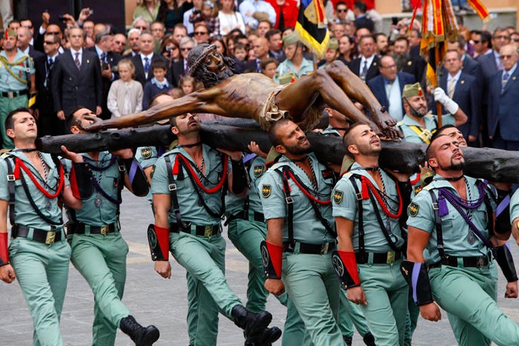 Thursday 18th April - Cristo de Mena: troops carry the Christ figure as they parade around Malaga - this is known as one of the most popular processions